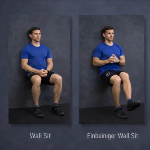 Sollte kein Beinstrecker verfügbar sein, können alternativ Wallsits oder Spanish Squats durchgeführt werden. Dennoch wird die Verwendung eines Beinstreckers empfohlen, da sich damit die Belastung am präzisesten steuern lässt.